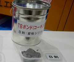 ボックスカルバートの中から高弾性接着剤の充填を行う