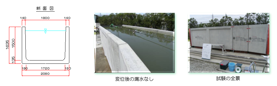 U型製品(1800×1500)を3本(有効長L=4.0mの標準製品1本、斜型製品2本)施工し、耐震性(地震時の追随性および水密性)を確認した。