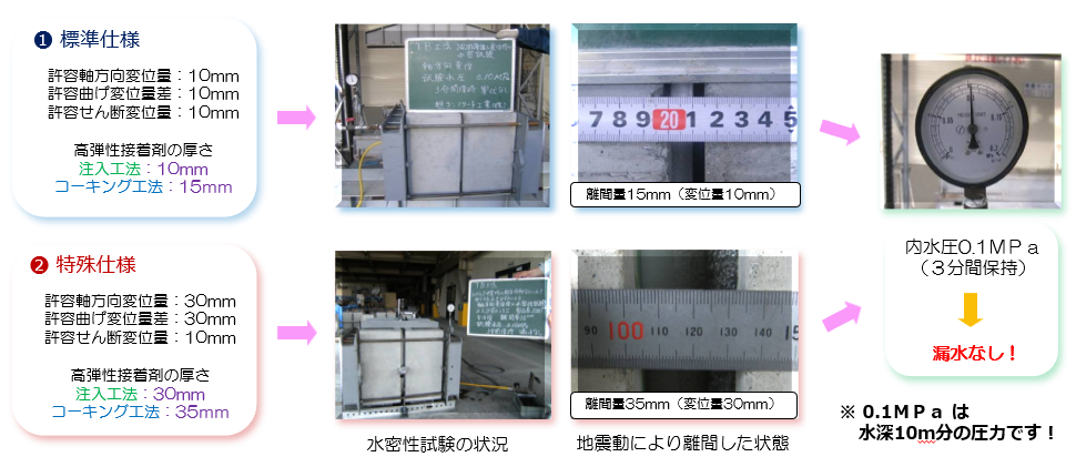※ 注入工法とコーキング工法の試験方法,許容変位量および水密性能はおなじです。