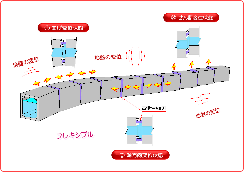 永久ひずみによる大きな地盤変位などによって継手部に発生する変位量が30mm以下の場合に対応
